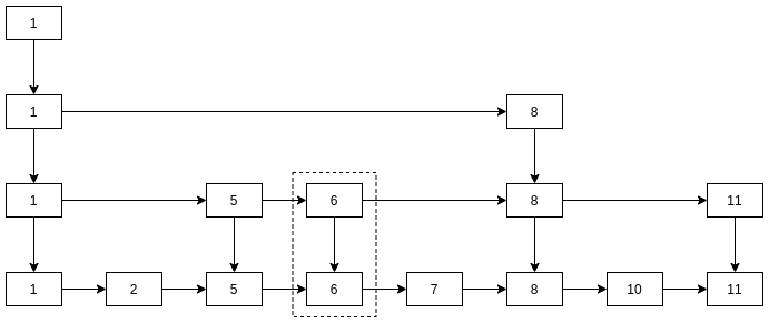 - 7与1判断, 7比1大, 且第四层1没有后继, 转第三层;